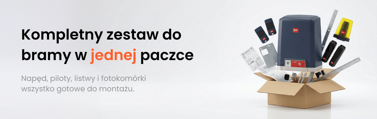 Zestawy i napędy do bram przesuwnych dobrane do wagi bramy, intensywności pracy i wygodnego codziennego użytkowania.