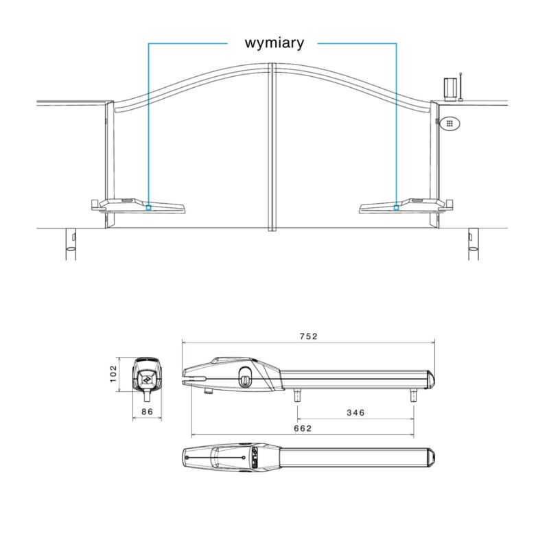 Zestaw OP 24 UNI DL 042 – do bram skrzydłowych o maks. długości skrzydła 2,5 m i wadze 250 kg (w zestawie z pilotami Dream4)