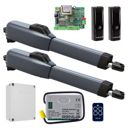 Kompletny zestaw najczęściej zawiera siłowniki do bramy skrzydłowej, centralę sterującą, piloty, fotokomórki, lampę sygnalizacyjną oraz elementy montażowe. W zależności od modelu zestaw może być rozszerzony o dodatkowe akcesoria, takie jak moduł Wi-Fi, antena czy akumulator awaryjny. Dzięki temu można dopasować system do własnych potrzeb i sposobu użytkowania bramy.