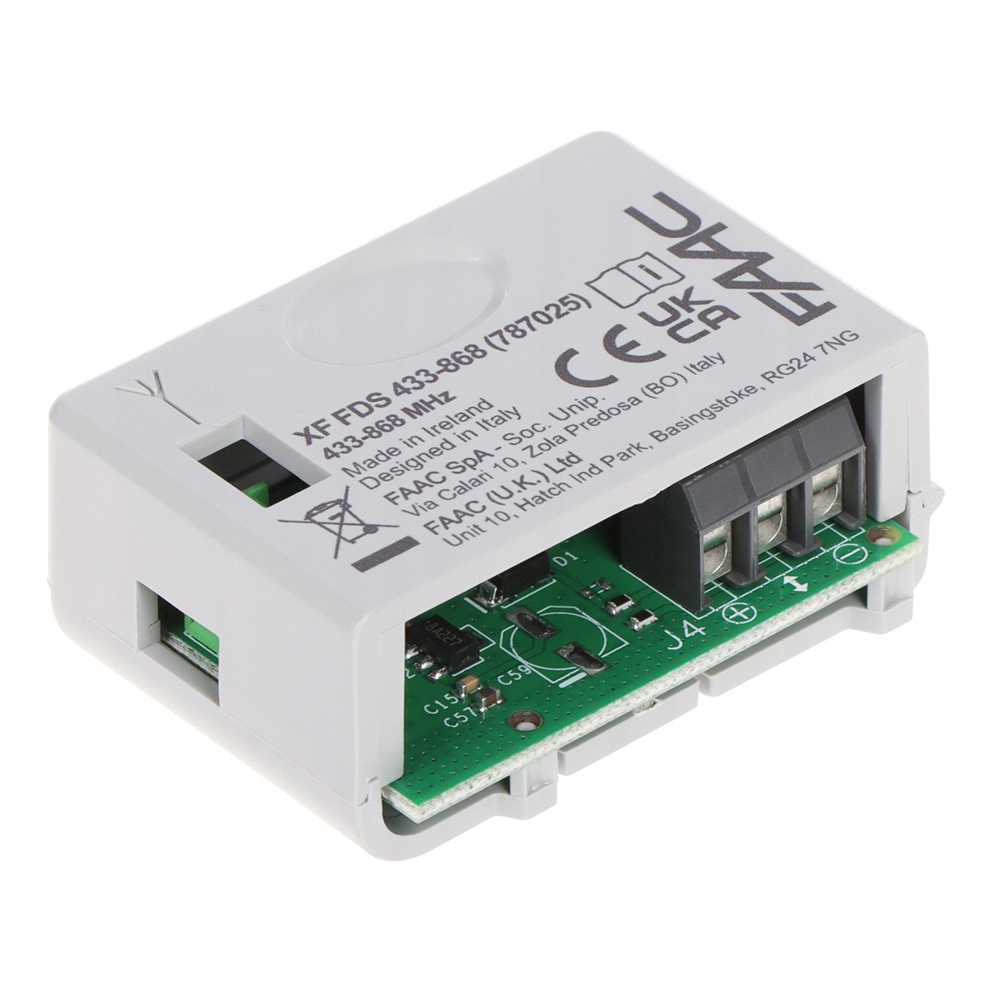 Największą wartością jest jednak sama droga radiowa FDS: FAAC opisuje ją jako rozwiązanie oparte o wysokowydajną modulację częstotliwości, z zabezpieczeniem transmisji AES-128 i pracą w podwójnej częstotliwości 433,92 / 868,35 MHz, co upraszcza instalację i poprawia odporność na zakłócenia w praktycznych warunkach.