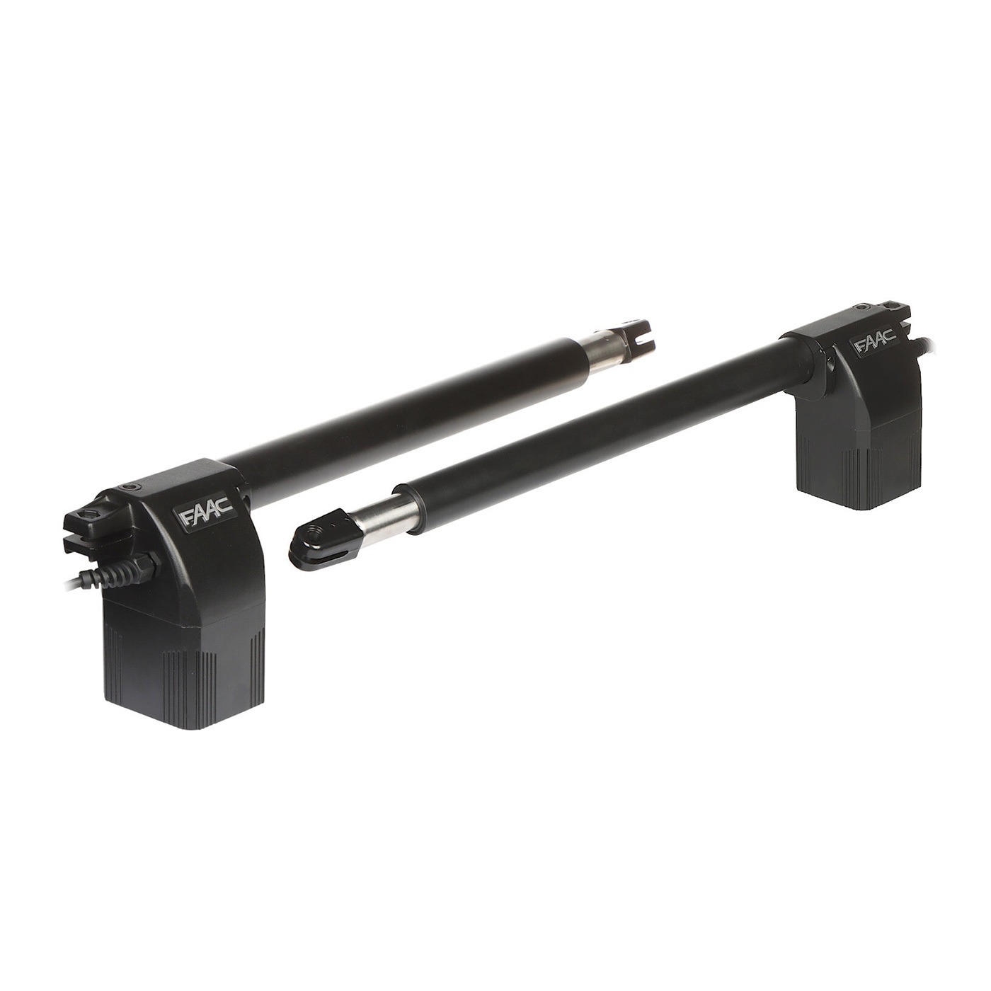 – Dostajesz napędy o parametrach typowych dla tej serii, m.in. maks. siła 3500 N i prędkość tłoka 16 mm/s , co przekłada się na pewne domykanie i stabilną pracę; dwa siłowniki FAAC 414 230 V, czyli klasyka do bram przydomowych.