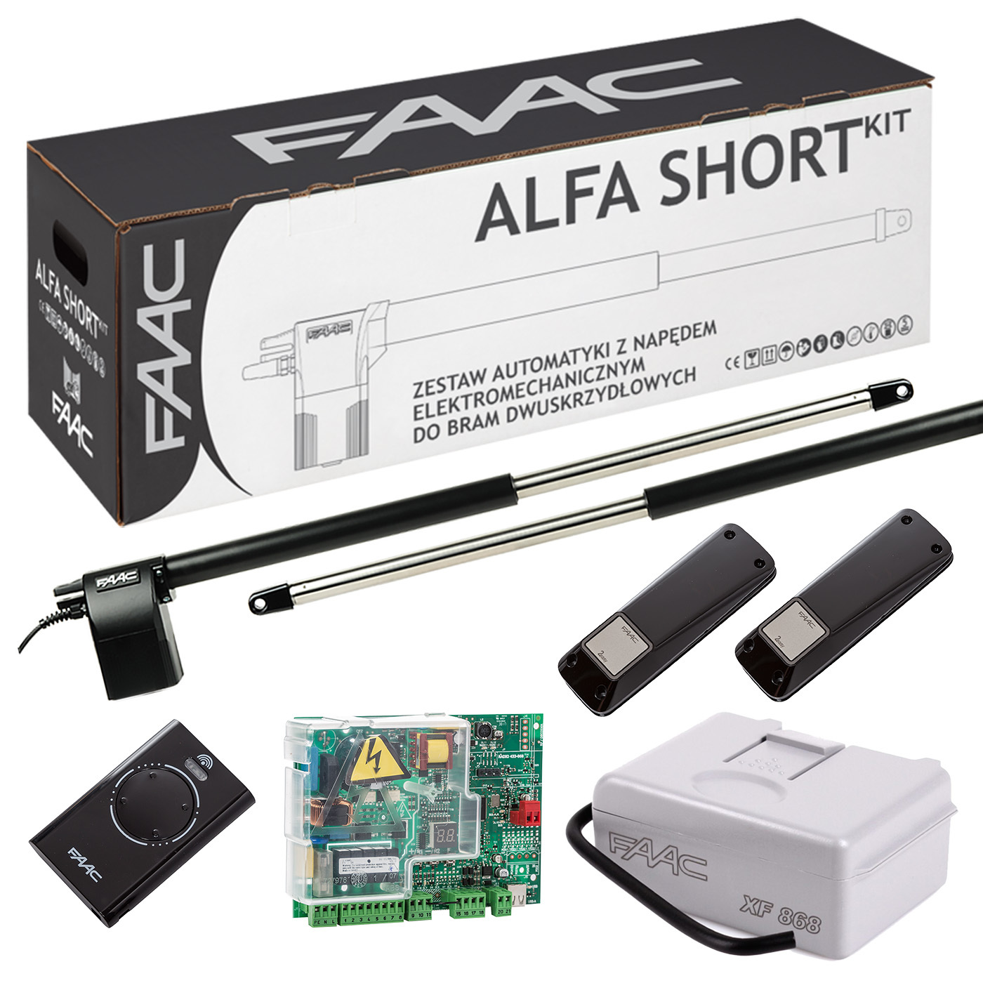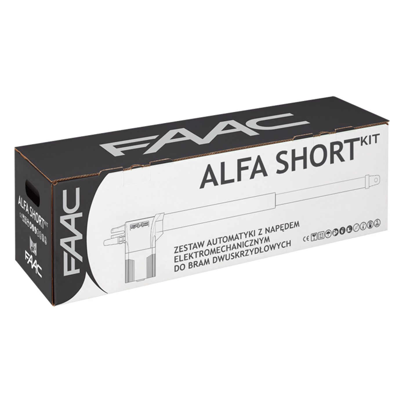 Przeznaczony do automatyzacji bram uchylnych skrzydłowych o wadze skrzydła do 350 kg i długości do 3 metrów, co pozwala obsłużyć bramę o świetle do 6m. Komplet Alfa Short jest idealnym rozwiązaniem do bram przydomowych, najsilniejszym w swojej klasie.