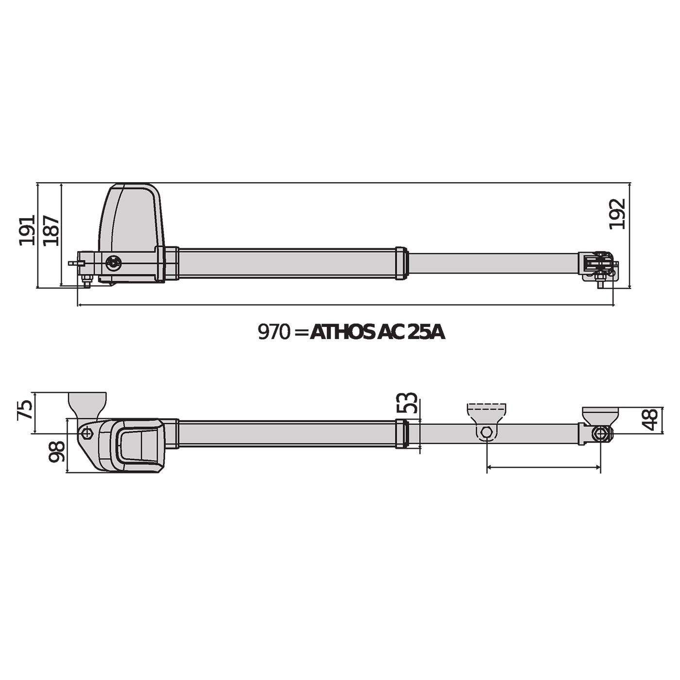 Dzięki konstrukcji wykonanej z odlewanych osłon aluminiowych i materiałów wysokiej jakości, takich jak przekładnia ze śrubą ślimakową i korona z brązu, zakres pracy siłownika Athos zapewnia maksymalną wytrzymałość, niezawodność i odporność przez długi czas. Siłowniki Athos charakteryzują się szybkością i łatwością montażu. Zapewniają także wysoki komfort dzięki szybkiemu zamykaniu i otwieraniu w połączeniu z wyjątkowo cichą pracą. kompaktowa konstrukcja: zaprojektowany z myślą o oszczędności miejsca, umożliwia maksymalną elastyczność instalacji nawet we wnękach, łatwa instalacja: wsporniki przednie i tylne są wyrównane względem siebie, co umożliwia łatwą i szybką instalację, maksymalna wygoda: otwarcie siłownika do 90° następuje w zaledwie 14 sekund, wytrzymałość i solidność: dzięki materiałom wysokiej jakości – odlewane ciśnieniowo aluminiowe korpusy i przekładnia koronowa z brązu, zasilanie siłowników: 230 V jednofazowe 400 W maks. na każdy siłownik