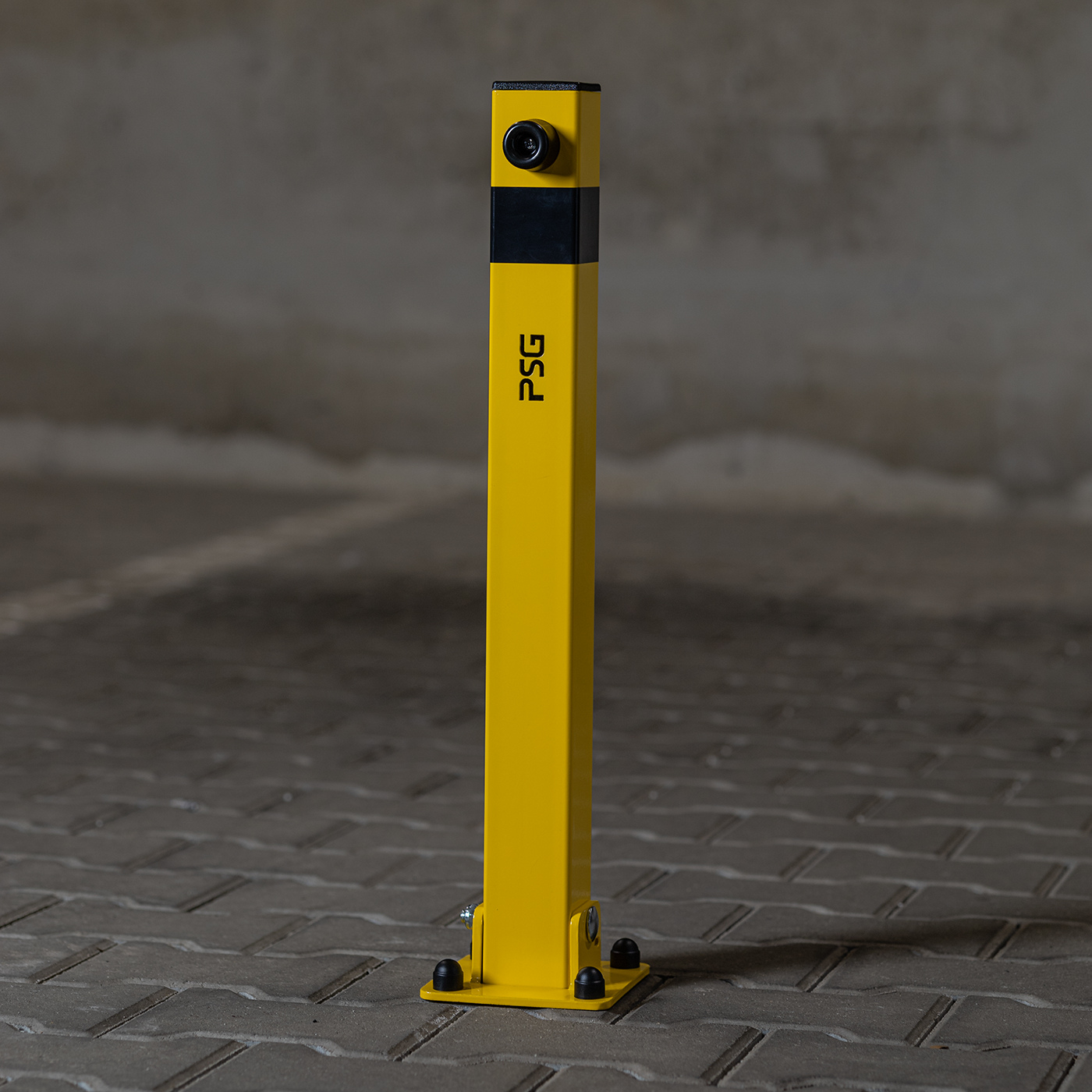 Blokada parkingowa słupek – na kłódkę, żółto-czarna