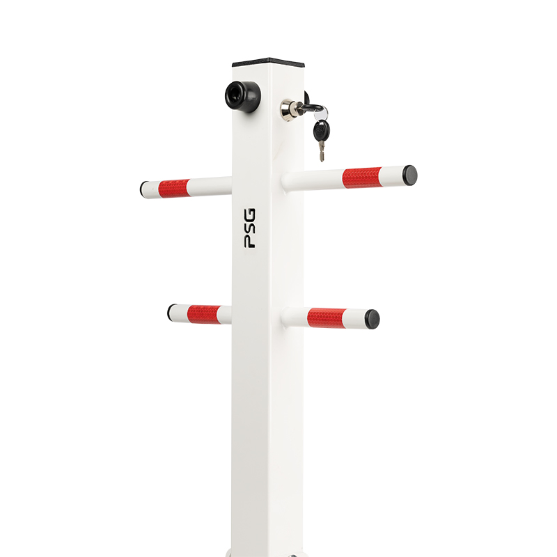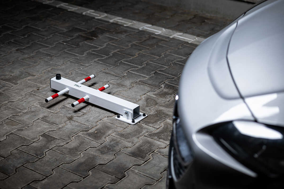 Blokada parkingowa służy do zabezpieczenia miejsca postojowego. Stosowana m.in. w podziemnych garażach, przy urzędach i na prywatnych parkingach, blokuje możliwość wjazdu pojazdom nieuprawnionym. Składana, wyposażona w zamek, jest wygodna w użytkowaniu – w zestawie są dwa kluczyki. Blokada typu jeżyk wykonano ze stali i zabezpieczona ocynkiem ogniowym. Dzięki temu jest odporna na opady atmosferyczne i niskie temperatury. pokryta farbą proszkową – na biało, z czerwonymi elementami odblaskowymi – jest dobrze widoczna, także w nocy. Montaż blokady parkingowej jest bardzo prosty – wystarczy przykręcić 4 kołki rozporowe, dołączone do kompletu.