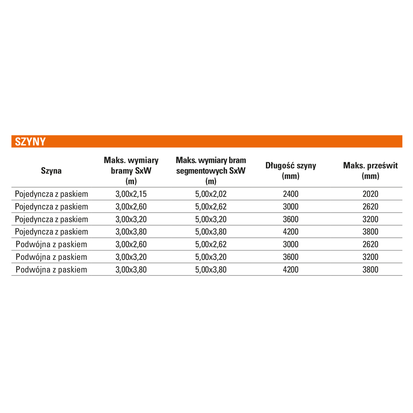 – WAŻNE: Maksymalny wymiar drzwi dla zastosowania zestawu D700 HS, podany jest w galerii zdjęć w tabeli pt. SZYNY