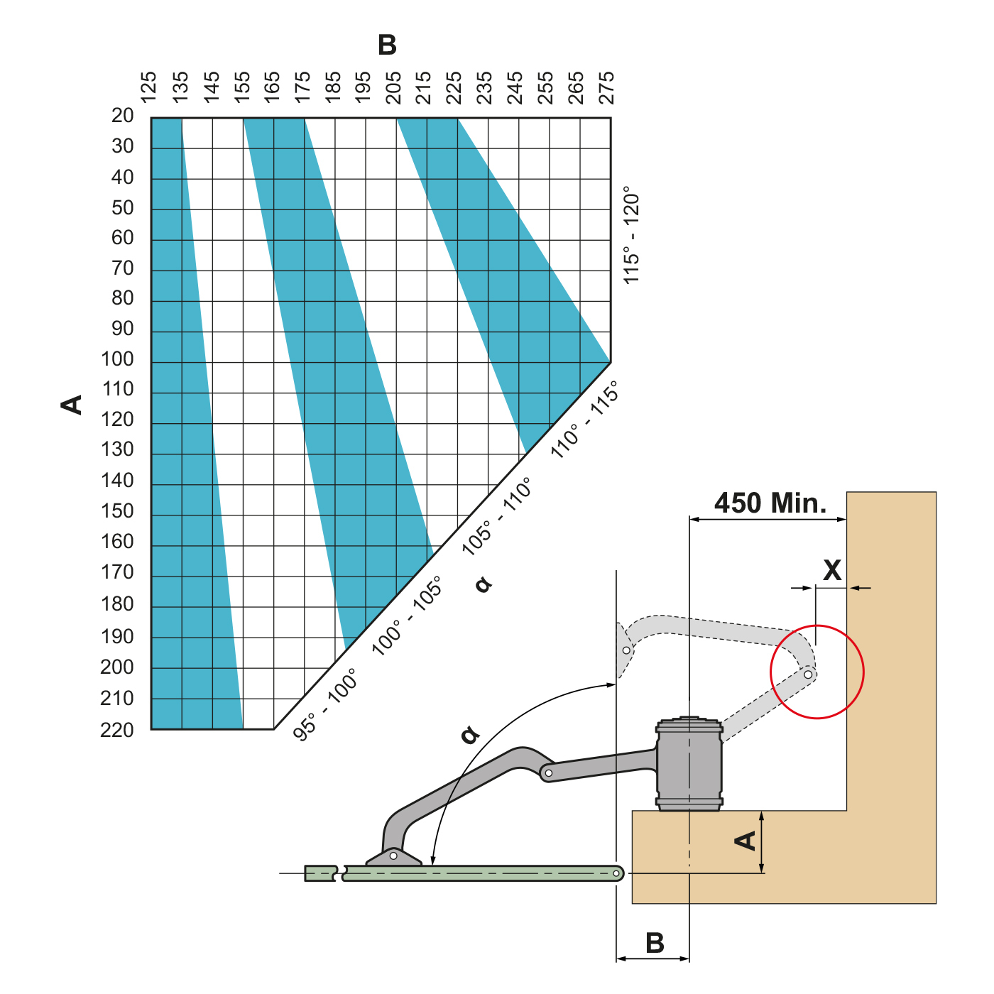 | Maks. kąt otwarcia skrzydła (°): | 120 |