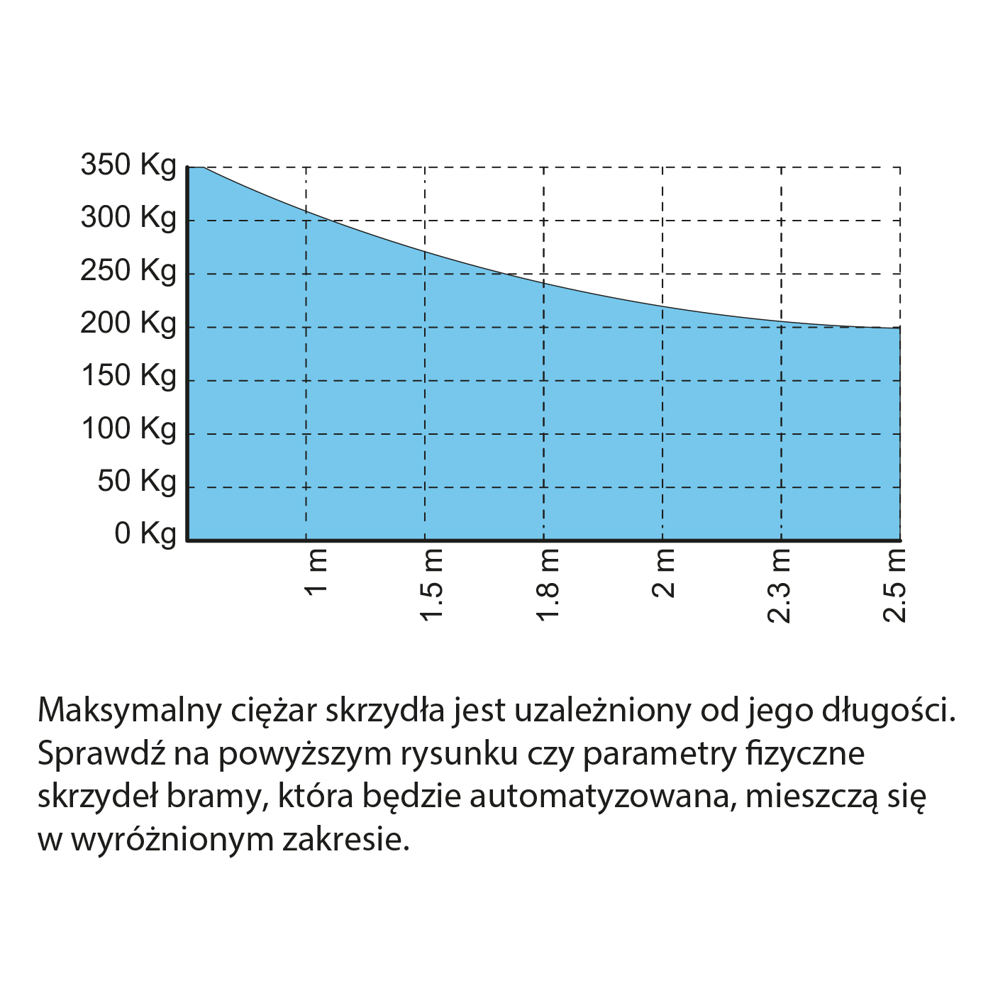 WAŻNE: Maksymalny ciężar skrzydła bramy podany jest na wykresie w galerii zdjęć produktu.