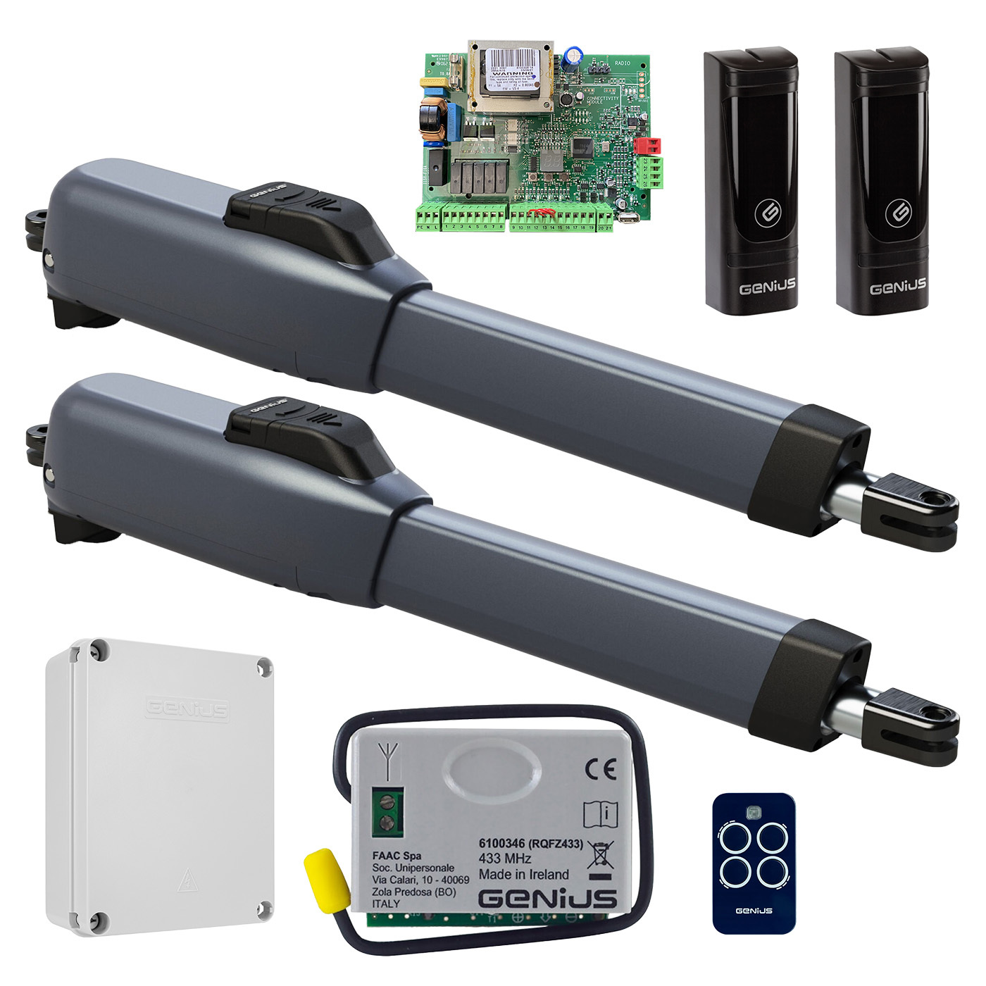 Zestaw służy do automatyzacji bramy rozwiernej z dwoma skrzydłami i zawiera komplet wymaganych akcesoriów. Nadaje się do skrzydeł o długości do 3 m.