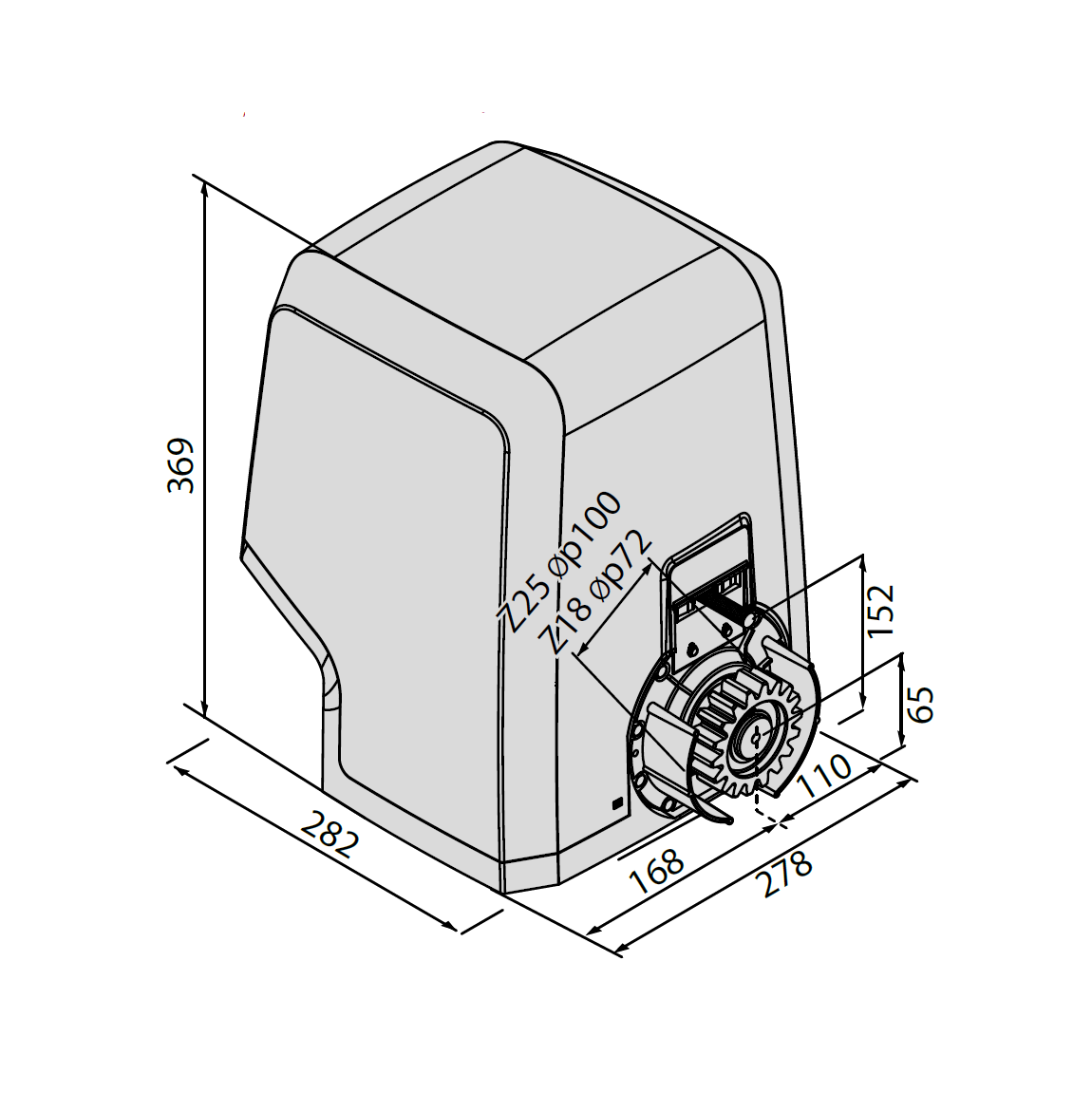 Napęd przeznaczono do bram przesuwnych o masie do 2000 kg i do bardzo intensywnego użytkowania. Mechaniczne przekładnie pracujące w kąpieli olejowej zapewniają ciche działanie, wysoką wydajność oraz dużą trwałość.