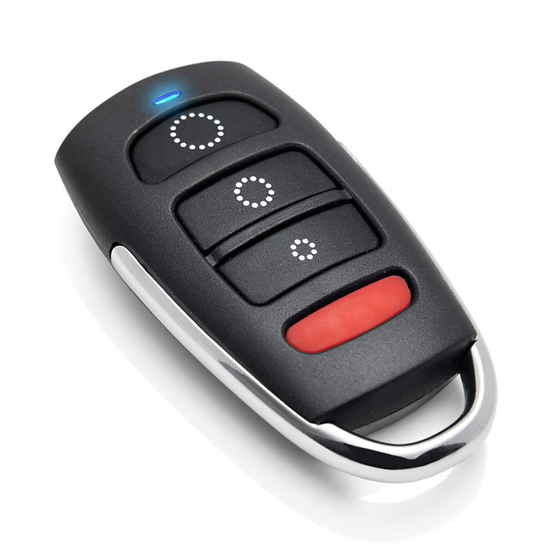 Układ pracuje w systemie KeeLoq z kodem dynamicznie zmiennym, co wyraźnie utrudnia skopiowanie sygnału przez osoby trzecie.