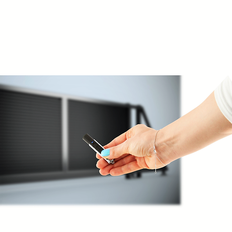 Pilot należy do rodziny Bi:KLIK, która łączy funkcję dwóch pilotów w jednej obudowie, dlatego cztery przyciski zapewniają dostęp do 8 kanałów pilota.