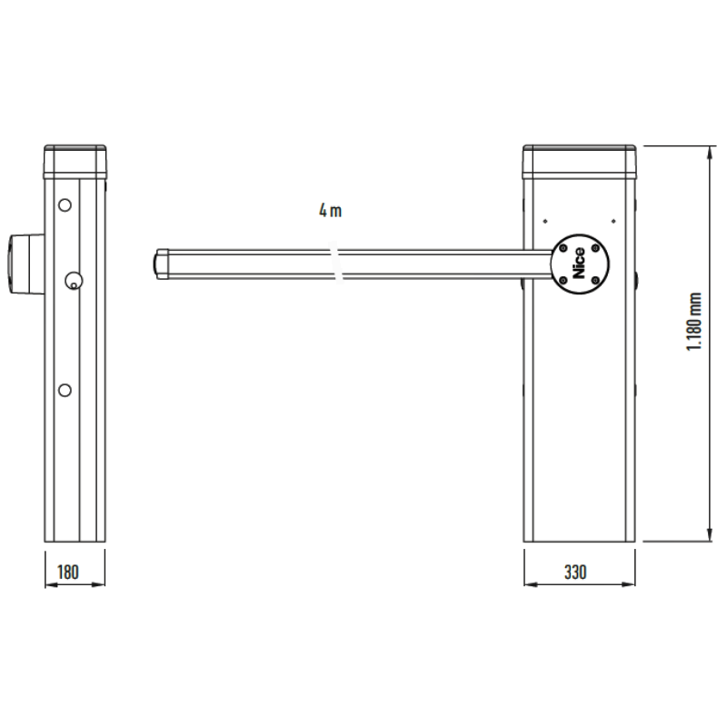 S-BAR, szlaban NICE elektromechaniczny z ramieniem o długości 4 m – zestaw