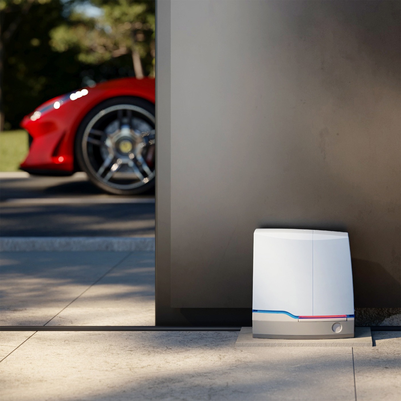 Gotowy zestaw instalacyjny: zestaw obejmuje 2 piloty MAXI2, para fotokomórek VISIO oraz energooszczędna lampa ostrzegawcza SUNLED – wszystko, co potrzebne do bezpiecznej i komfortowej obsługi bramy.