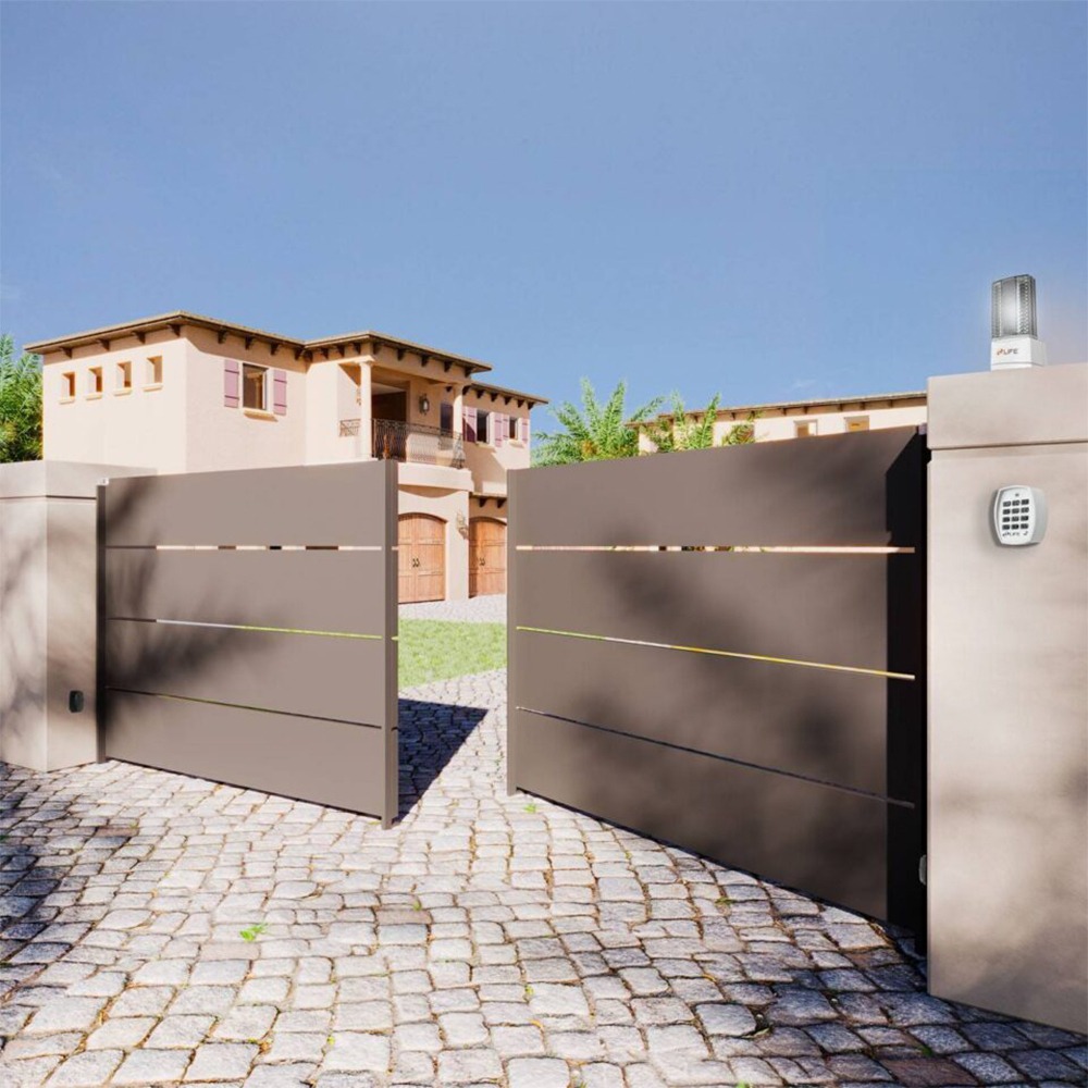 Zestaw automatyki Life Skyline OP3 UNI DL 042 przystosowano go do obsłudze bram skrzydłowych o maksymalnej długości skrzydła 3 m i wadze do 350 kg. Solidne siłowniki elektromechaniczne zasilane napięciem 230 V AC gwarantują niezawodne działanie nawet w przypadku większych i cięższych bram. Zestaw obejmuje wszystkie niezbędne elementy montażowe, w tym dwa siłowniki OP3 SKYLINE UNI, centrala sterująca GEUNI R DL, fotokomórki VISIO, lampa ostrzegawcza SUNLED oraz dwa piloty MAXI2. Całość stanowi kompletne rozwiązanie zarówno do posesji prywatnych, jak i obiektów użytkowych, gdzie liczy się wygoda, trwałość i bezpieczeństwo.