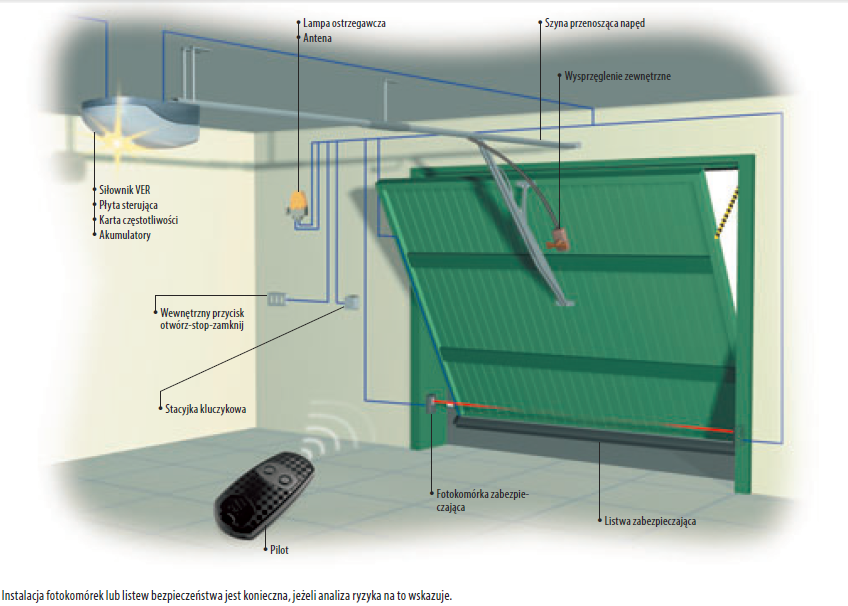 Mocowanie automatyki bezpośrednio na szynie napędowej.